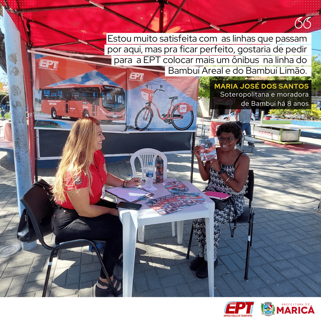 "Estou muito satisfeita com as linhas que passam por aqui, mas pra ficar perfeito, gostaria de pedir para a EPT colocar mais um ônibus na linha do Bambuí Areal e do Bambuí Limão", destacou Maria.