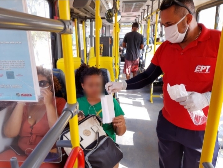 A Autarquia Empresa Pública de Transportes em uma ação conjunta com a Prefeitura Municipal de Maricá, iniciou neste sábado 02 de maio de 2020 a distribuição de máscaras de proteção para a população, no Terminal Rodoviário de Maricá e em Itaipuaçu.